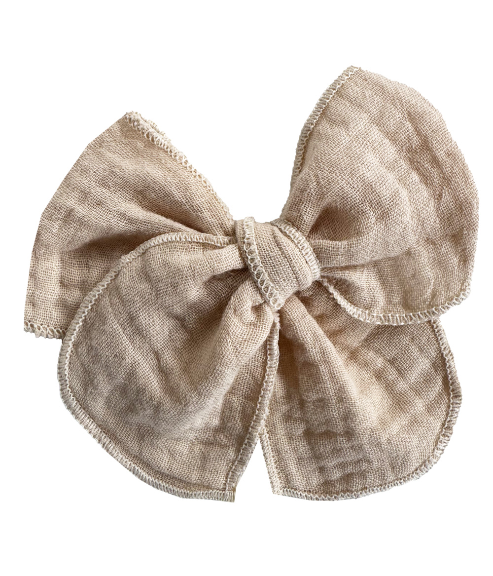 Moño “mini” tamaño 9x8cm confeccionado en muselina. Disponible en más de 15 colores.
